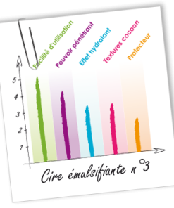 我們建議您避免在用Wax n°3製成的奶油中使用高酸化活性成分(AHA果酸,DHA,明礬石粉) 因為酸性pH值往往會破壞這種乳化劑對乳液的穩定性。